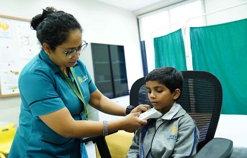 The school has a well-equipped infirmary staffed with a qualified full-time nurse to handle any medical emergencies or first aid requirements during school hours. The infirmary maintains essential medical supplies and first-aid kits in every wing of the school. Regular health check-ups are organized in coordination with certified medical professionals to monitor students’ physical well-being. The nurse maintains detailed health records and ensures timely communication with parents in case of medical concerns.